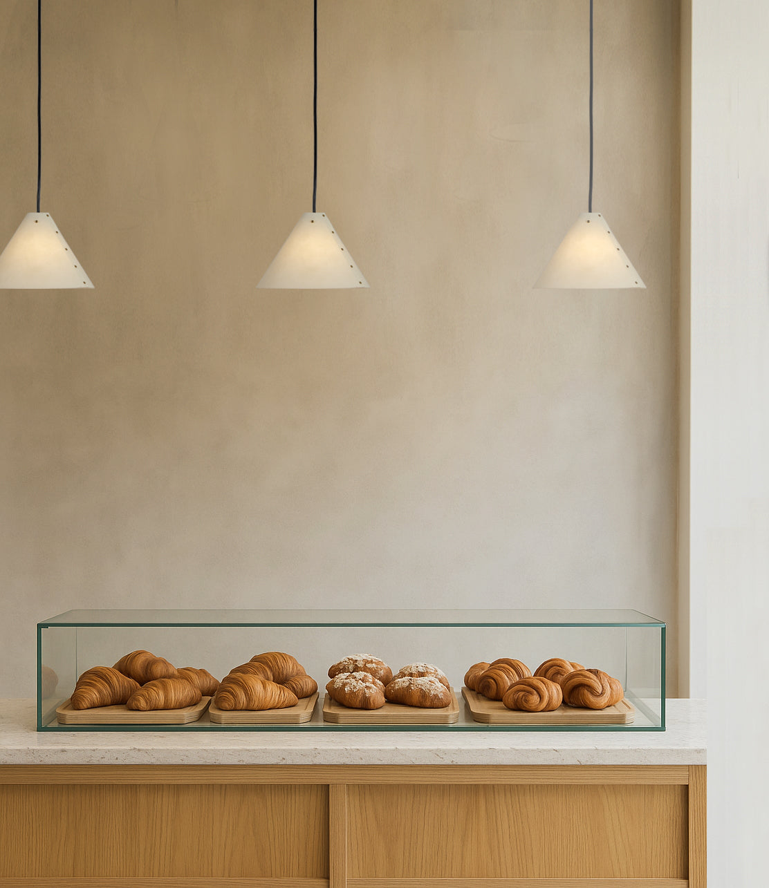 La petite suspension Spiss est dotée d'un abat-jour conique en papier de mûrier, rappelant la forme d'une lampe de cordonnier. Fabriquée en Scanie avec une précision méticuleuse, elle diffuse une lumière chaleureuse. L'intérieur de l'abat-jour, en plastique PP opale, reflète la lumière.